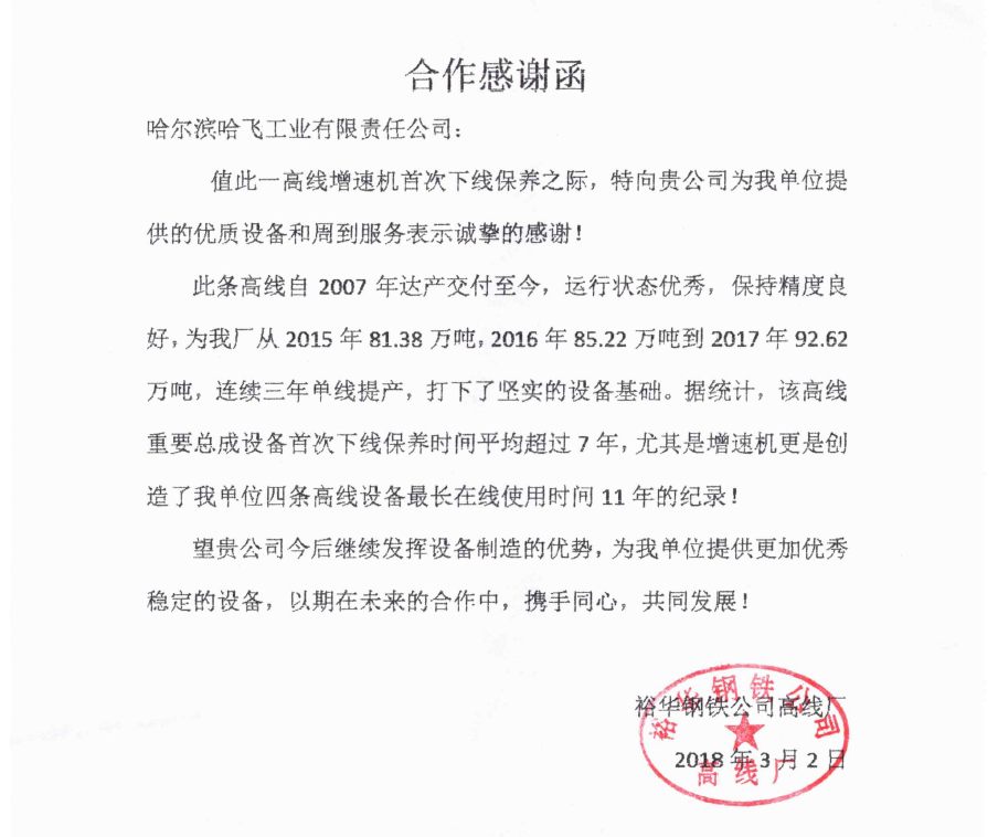 哈爾濱哈飛工業(yè)有限責(zé)任公司旗下的機電設(shè)備制造產(chǎn)業(yè)是目前國內(nèi)規(guī)模大、專業(yè)的高速線材軋機和棒材軋機整機及備件的生產(chǎn)制造企業(yè)。公司現(xiàn)坐落于哈爾濱市平房區(qū)汽車零部件工業(yè)園B區(qū),占地面積30000多平方米。現(xiàn)有員工近550人,其中具有中高級職稱的研發(fā)及工程技術(shù)人員100余人。 公司曾獲得冶金部授予的“高線軋機設(shè)備優(yōu)單位”稱號、國家技術(shù)進(jìn)步二等獎等獎項,公司生產(chǎn)的十八項高線軋機重要部件通過了技術(shù)鑒定... +MORE